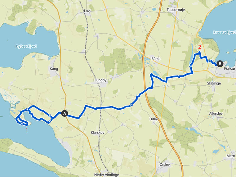 Denne 28km varierede natursti strækker sig over Sjællands smalle punkt fra Præstø Fjord til Avnø.