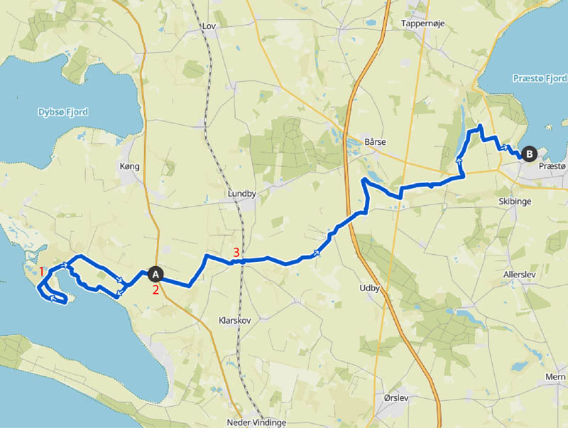 Der er kun et kort stræk fra nattens lejrplads og ind til Præstø.