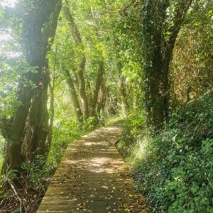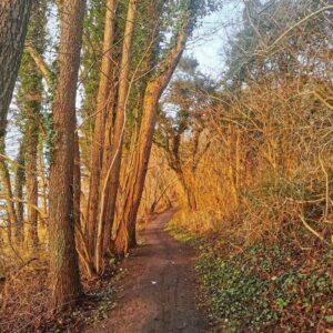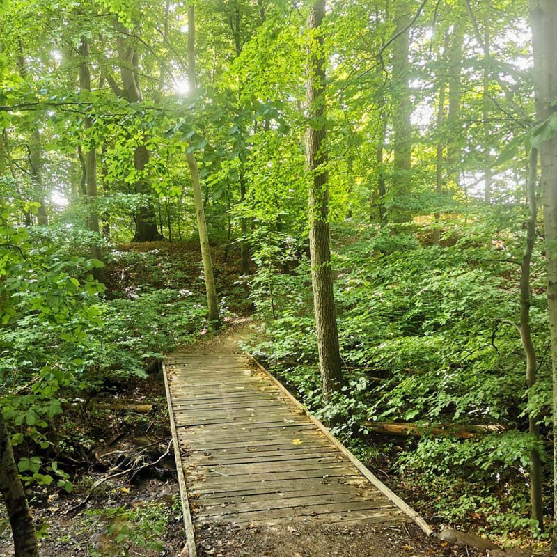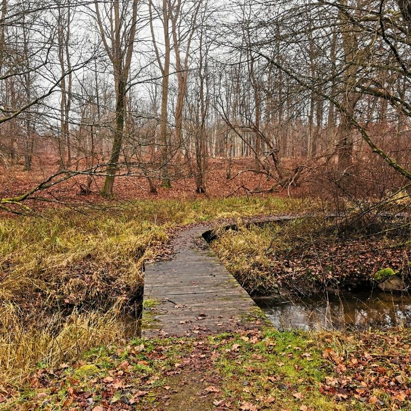 Det var strækket gennem Skovhus Vænge, en lille, stemningsfuld skov med smalle, snoede stier, stejle skrænter og hvor man flere gange krydser Køge Å via små træbroer.