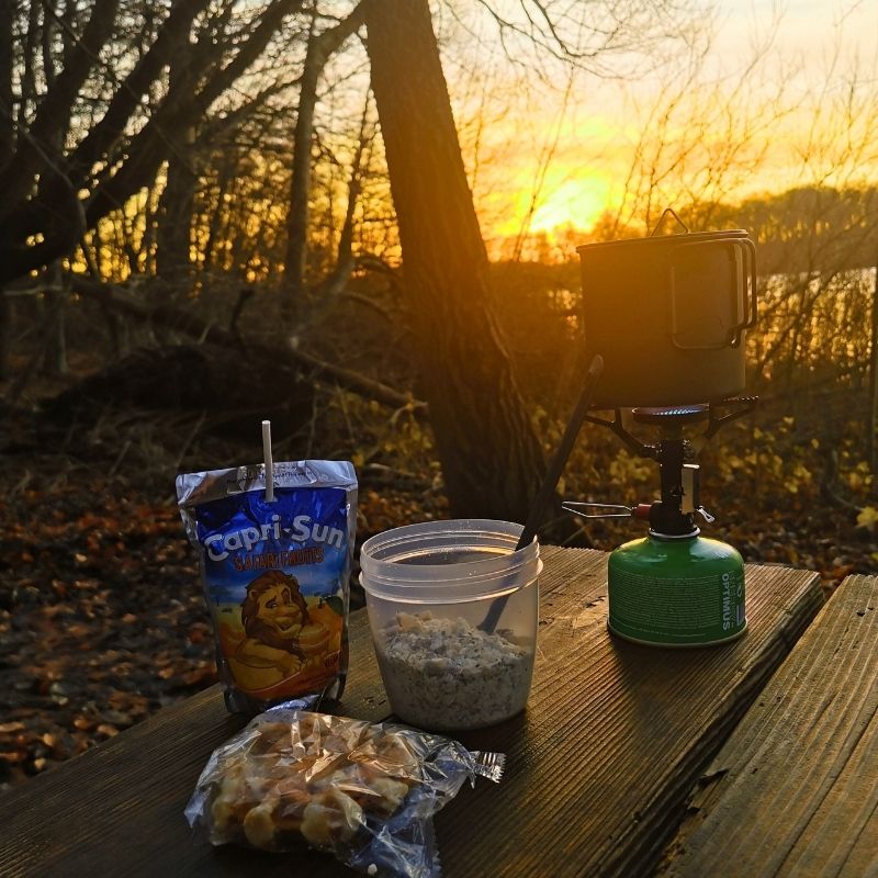 Pladsen ligger lige på stien, og der er to shelters, muldtoilet og drikkevand. Selvom det ikke fremgår nogen steder, tænker jeg, at vandhanen er lukket om vinteren, da det bare er et fritstående vandrør.