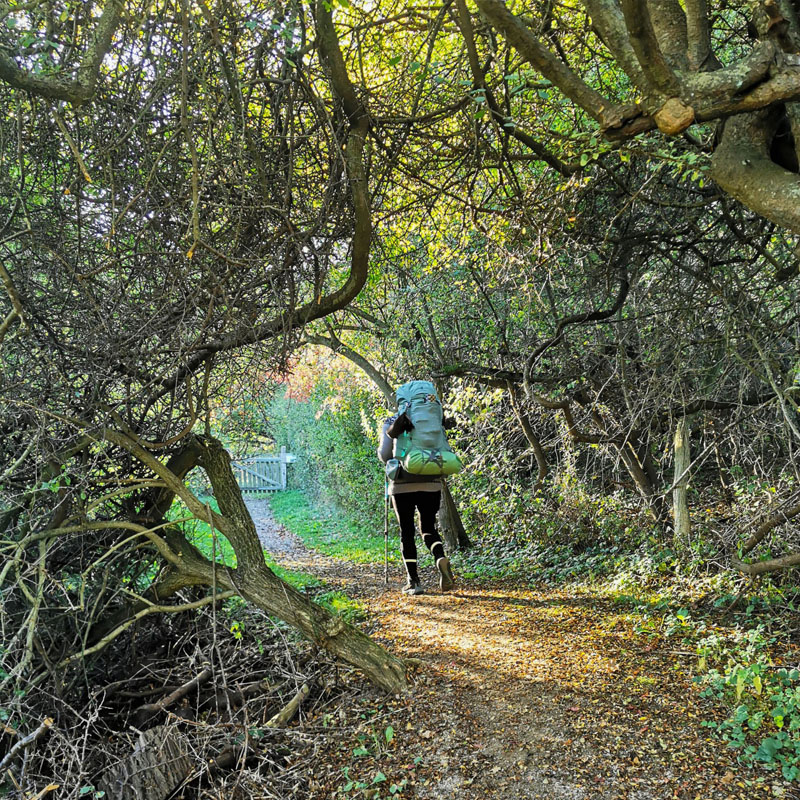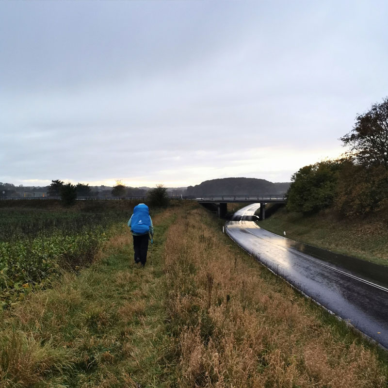 Denne gang tog jeg toget til Borup Station og gik derfra ned til starten i Dynet. Jeg havde en enkelt overnatning i shelter ved Vrangeskov.