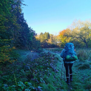 Ringsted Oplevelsessti kender jeg og ved, at den går igennem et landskab, der ville tage sig godt ud i farverne. Men den er lidt kort, og jeg ønskede flere km, så jeg begyndte at kigge på Køge Å Stien. Sammenlagt gav de to stier den helt perfekte længde, og de få overnatningsmuligheder, der er, gik op i en højere enhed. Det var min første tur ad Køge Å Stien, og hvor er det en smuk rute. Den var virkelig spændende at gå, masser af variation og små overraskelser. Jeg kan mærke, at dette bliver en af mine yndlingsstier, og jeg glæder mig allerede til at gå den igen.