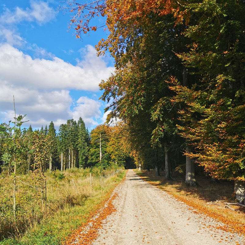 Denne rute var den første, der dukkede op i mit hoved, da min veninde gerne ville med på en tur i efterårsfarverne. Den går nemlig gennem mange smukke skove.