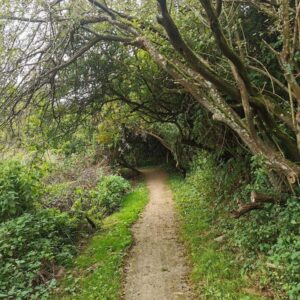 Skovene bød på ekstra udfordringer denne gang; der var rigtig mange væltede træer på grund af den seneste tids kraftige blæst og storm. Man måtte kravle over, under og uden om mange stammer, der lå hen over stien. Det var helt trist at se nogle af de kæmpestore træer ligge ned.