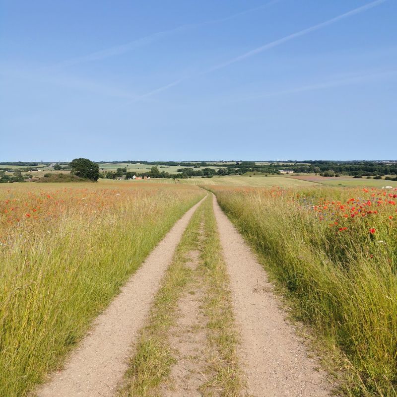 Skjoldungestien strækker sig igennem det bakkede og varierede landskab mellem Roskilde Fjord og Bidstrup Skovene ved Hvalsø.
