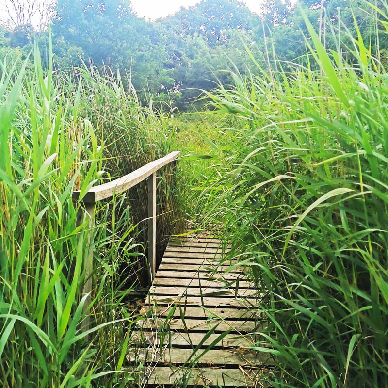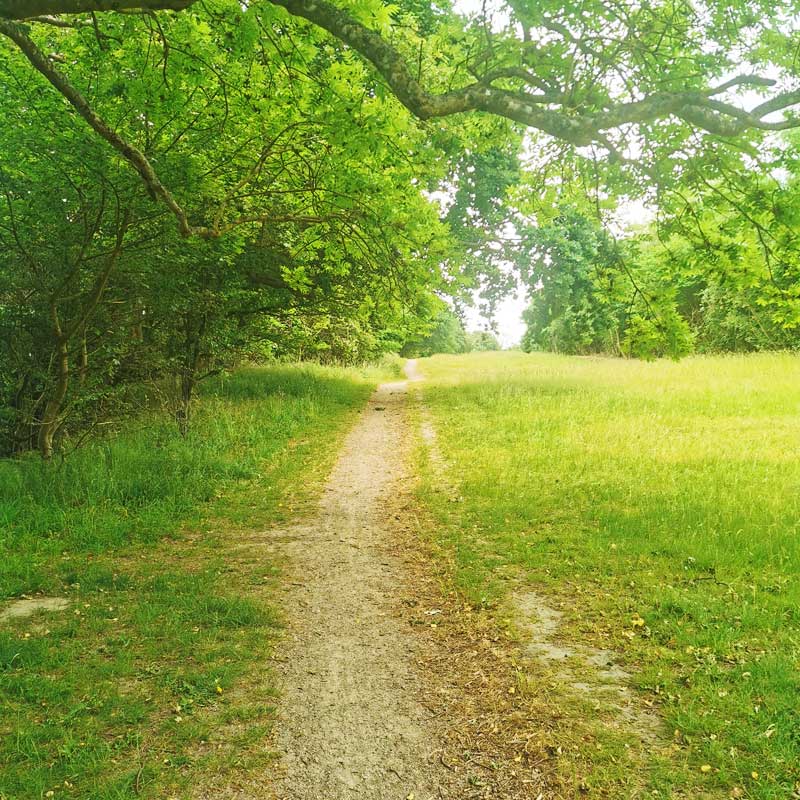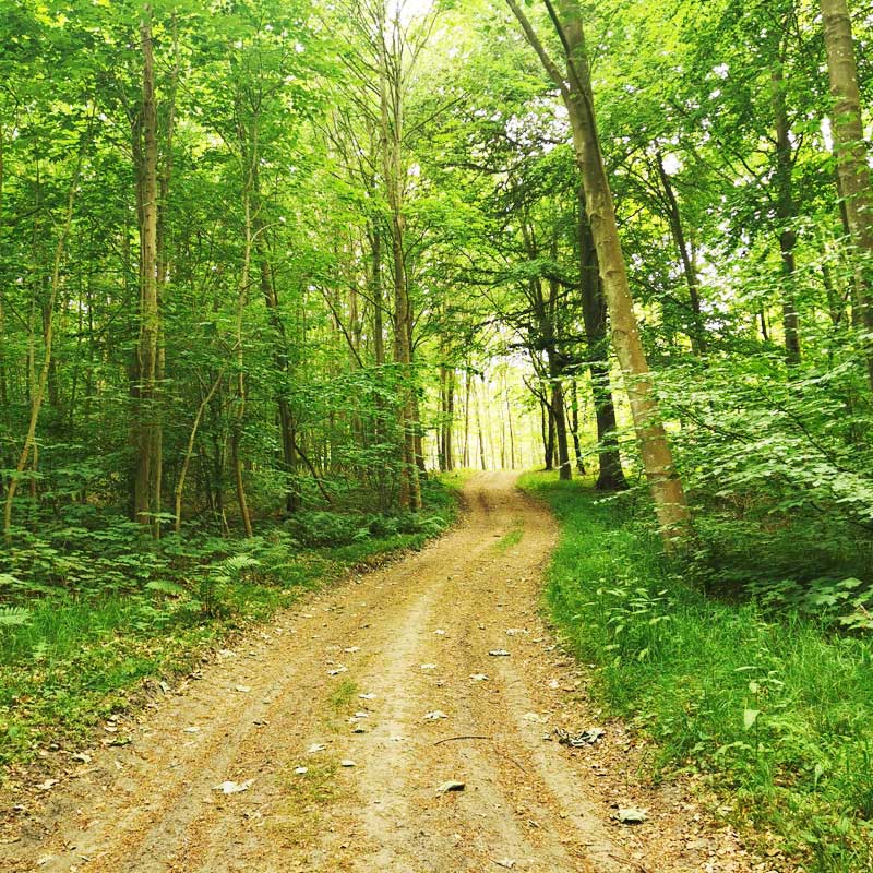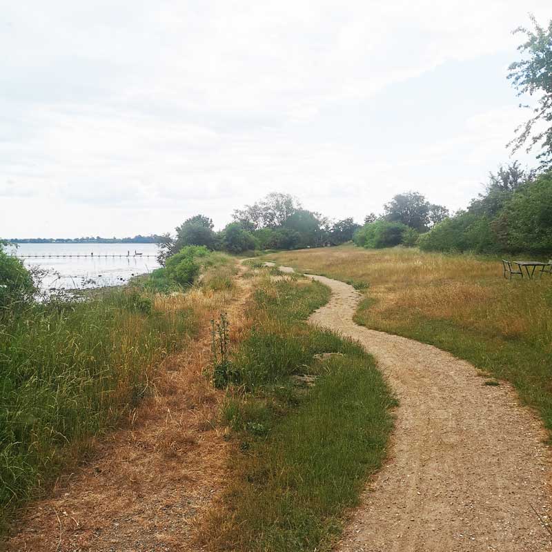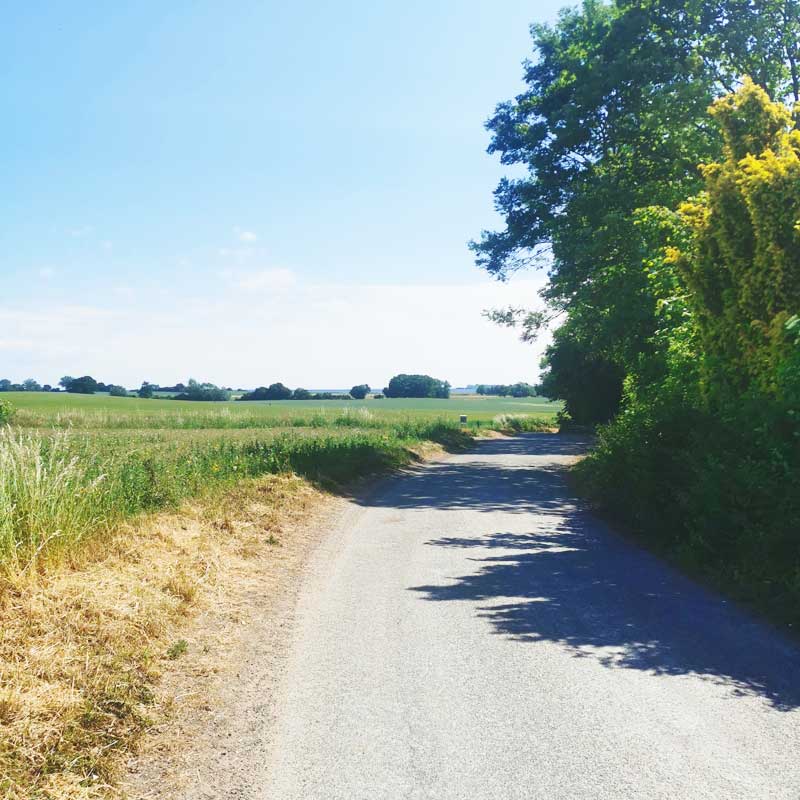 Dagen starter med et langt stræk landevej ned til Viemose Skov. Herfra er der skovsti og natursti resten af vejen til Kalvehave Havn.