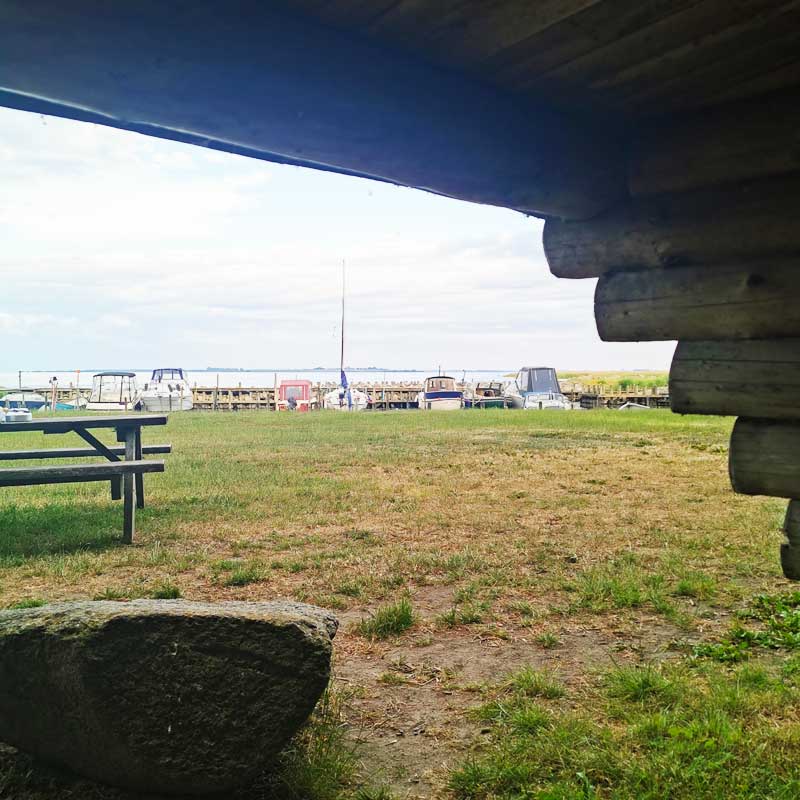 Ved Sandvig Fiskerihavn ligger 2 shelters. De kan ikke bookes, så her gælder “først-til-mølle”-princippet. Der er masser af plads til at slå telt op, hvis shelterne er optaget.
