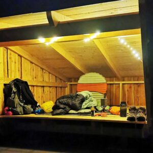 Da jeg overnattede der, var spotlys fra basketbanen ret generende – de tændte, hvis nogen gik forbi, og lyste direkte ind i shelteret. Jeg kunne forestille mig, at der er meget aktivitet på sportspladsen om sommeren.