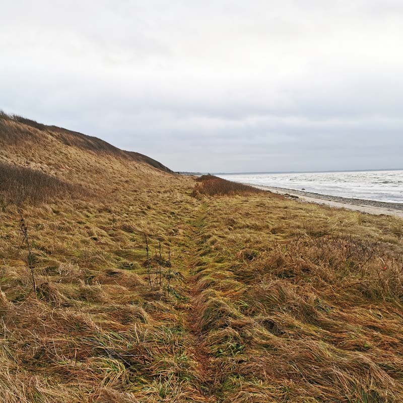 Strækket ned langs kysten på Musholmleden er helt klart turens højdepunkt – det er 9 km med skøn, rå natur og fine badestrande.