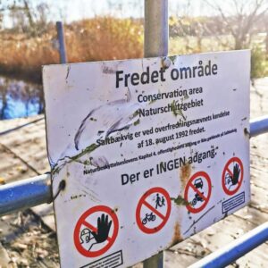 Da jeg kom til Saltbæk Vig, stødte jeg på endnu et problem. Jeg ville have gået nord om vigen – der var en sti ifølge kortene – men jeg blev mødt af store adgang-forbudt skilte. Vigen er fredet område, alt færdsel er forbudt, og det skal man respektere. Jeg satte mig på en sten og planlagde en alternativ rute syd om vigen.